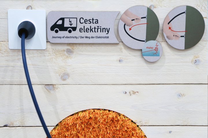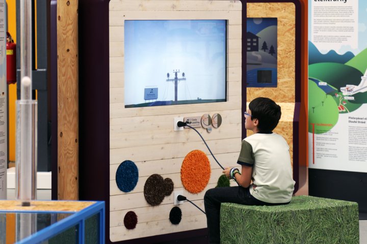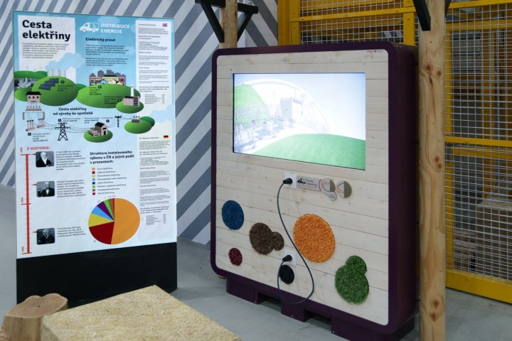 Exponát představující tajemný svět za zásuvkou. Odkud se bere elektřina? Návštěvnící pomocí tahání kabelu ovládají animaci, která je z domova zavede do vodní elektrárny a odkryje tajemný svět vzniku a cesty elektrické energie. Pro exponát jsme vytvářeli softwarové řešení a animaci.
