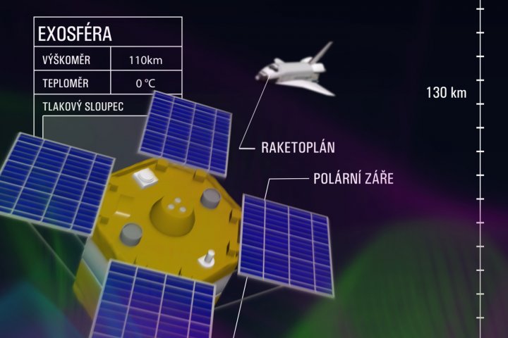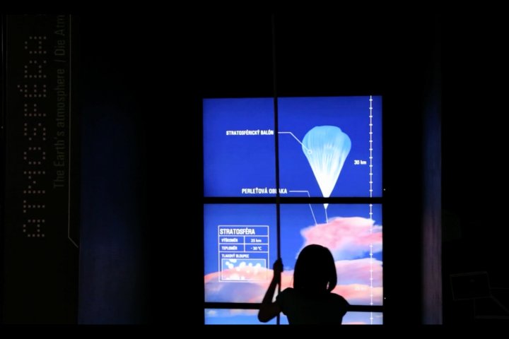 Je exponát, který interaktivní formou ukazuje jednotlivé vrstvy zemské atmosféry. Pomocí tahu za lano návštěvník pomyslně stoupá do jednotlivých vrstev atmosféry a zjištuje, co je pro danou vrstvu typické a co se v jednolivých vstvách děje. Pro exponát jsme vytvořili softwarové řešení a současně jsme vytvořili animaci, která vynese návštěvníky od zemského povrchu až do vesmíru.