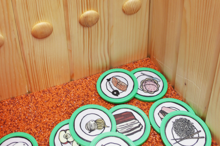 Návštěvník si zvolí člověka, jehož stravu bude řešit. Na výběr má z pěti možností. Poté, co si zvolí, začne skládat jeho denní vyváženou stravu. Stravu představují kolečka, která mají ze spodní strany čárkový kód z horní strany piktogram potraviny. Návštěvník vybrané jídlo pípne přes skener a umístí ho zpět. Po načtení jídla se načítají jednotlivé hodnoty a zobrazuje se nákupní seznam. Po dosažení celkové energie se vše zastaví a software napíše návštěvníkovi, kde a kolik ještě chybí, případně přebývá.